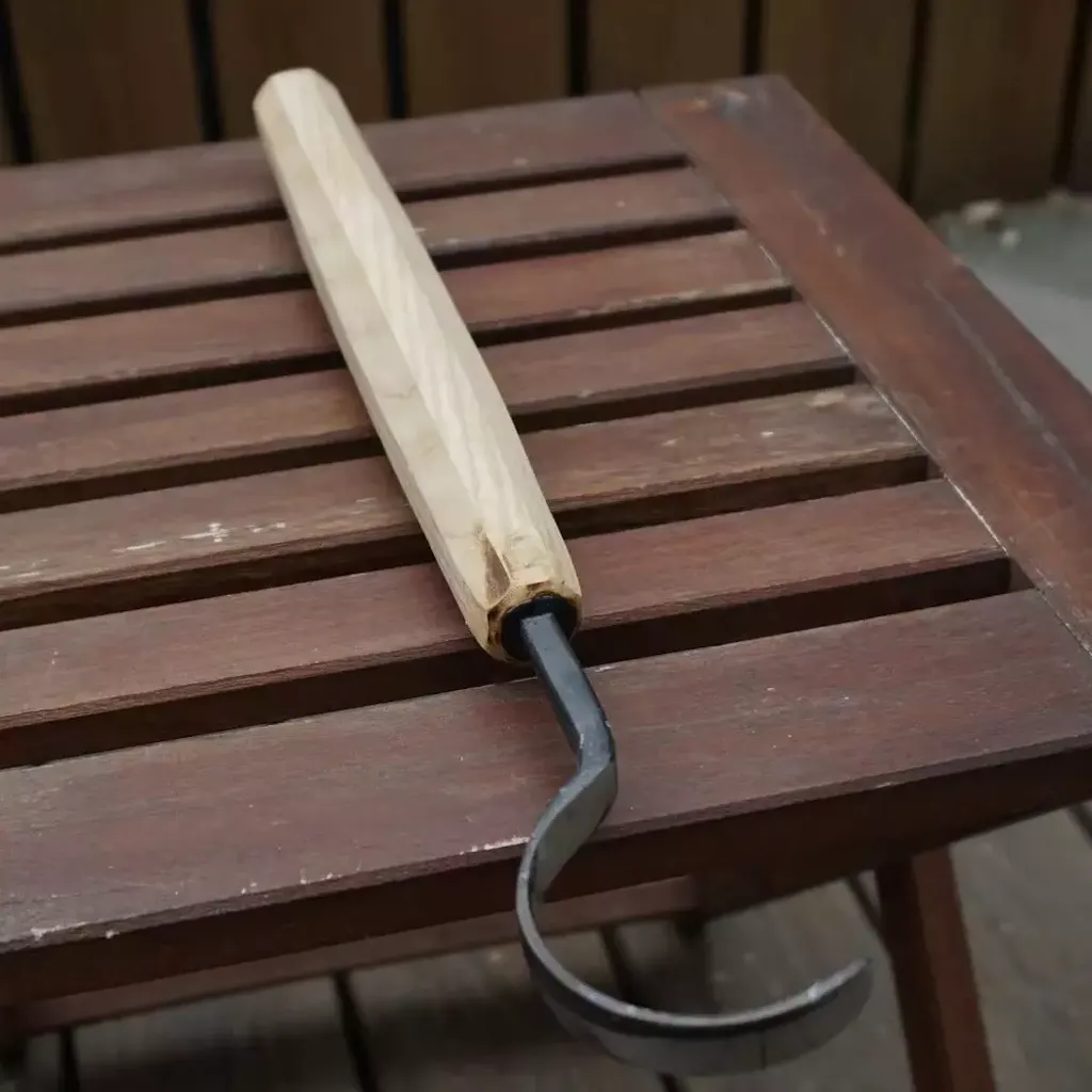TWCA CAM without wooden handle for right handed carving. High quality handmade wood carving tool suitable for both professionals and beginners. The tool is made from spring steel (51crv4) , thermally hardened. The edges are sharpened with abrasive paste and finished with leather. All this guarantee a long life of the item. The tool is delivered in a stable thick carton box.